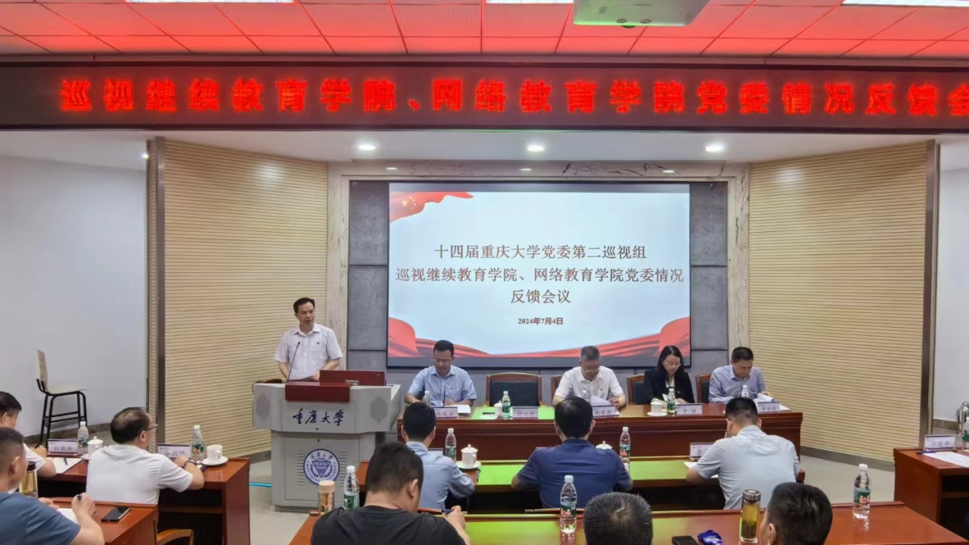 第二巡视组组长明兴建在反馈会议上宣读了巡视反馈意见。继续教育学院、网络教育学院院长杨成云主持会议,党委书记黄世荣作表态发言。党委巡视办主任罗滌、党委组织部副部长彭守建,继续教育学院、网络教育学院班子成员和全院教职工参加会议。